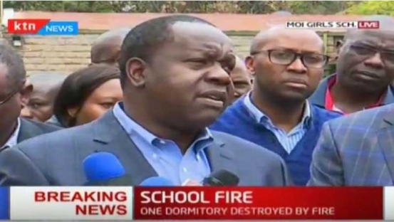 Dr Fred Matiang’i addressing the media at Moi Girls School (Photo: Courtesy)
