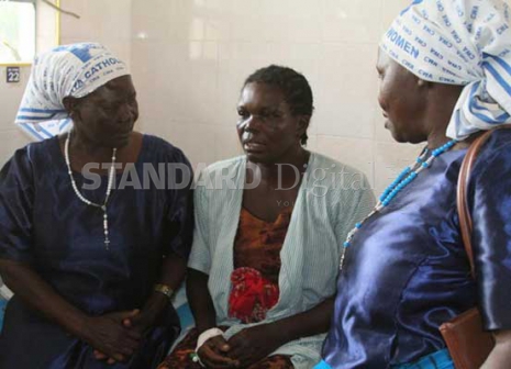 Margaret Magutu (centre) is consoled by her friends at St. Akidiva Hospital in Kuria on Sunday. She was admitted for the shock she suffered after her four children were killed when a lorry crashed into their house at Mabera Shopping Centre on Saturday. [Boniface Okendo, Standard]