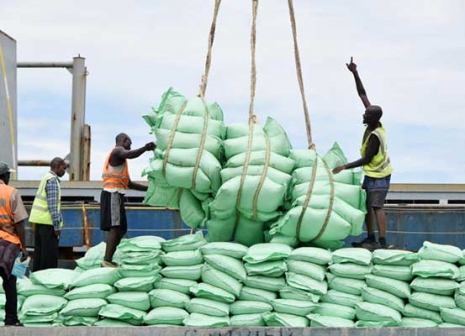 Port workers offload duty-free sugar from Brazil earlier this year. Tax waivers on such commodities have eaten into the country's custom duty. [Gideon Maundu, Standard]