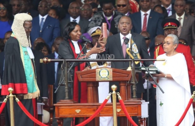 An elated President Uhuru Kenyatta delivered his speech to a capacity crowd at the Kasarani Stadium, immediately after receiving the instruments of power. He is now faced with the difficult task of uniting Kenyans and healing the nation that has recently been divided along political and ethnic lines.
