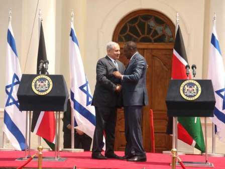 Benjamin Netanyahu and Uhuru Kenyatta at State House, Nairobi, last year. [File picture]