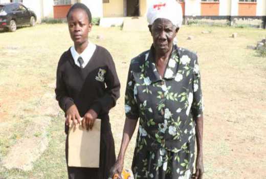 Sharon Akinyi and her grandmother Nereah Awinda, 85, leave the office of the Ministry of Education, Kisumu West Sub County on Monday January 15, 2018. Akinyi had been denied admission in Form One for keeping long hair. PHOTO Y KEVINE OMOLLO/STANDARD