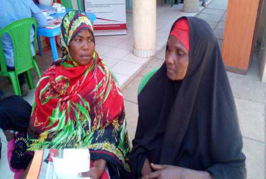 Sixty-five-year-old Khadija Bashara (right) with her daughter after being screened in Nairobi's Eastleigh area. She travelled from Tana River County for screening. [Graham Kajilwa, Standard]