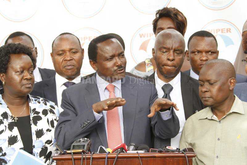 Wiper National Executive Committee members (NEC) led by party leader and NASA Principal Kalonzo Musyoka address the Press at the party headquarters in Nairobi 06/01/2018 [PHOTO/ Willis Awandu]