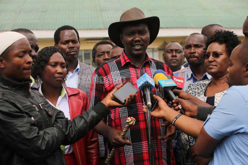 Uasin Gisu Governor Jackson Mandago (centre) addresses the press after attending the issuing of title deeds of Chepkanga Plots to Mwalimu Sacco for Elgeyo Marakwet and Koibatet Baringo members in Eldoret. 09.03.2018. PHOTO/Peter Ochieng/Standard].