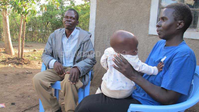 HIV positive parents Walter Odero and Evelyn Akoth with their child in Kanyasa Village, in Homa Bay County. Their three children are all tested negative for the virus [Jeckonia Otieno, Standard]