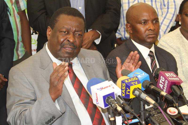 Amani National Congress leader Musalia Mudavadi flanked by secretary general Godfrey Osotsi (right) during a press conference on 10/08/2016. [Photo/Willis Awandu]