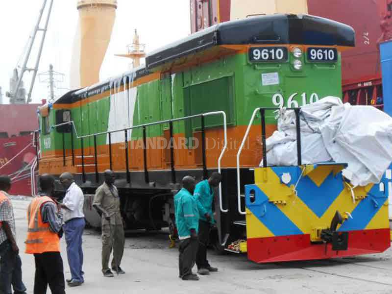 Mombasa port workers view one of the three locomotive engines imported by Rift Valley Railways (RVR) on December 28. Part of the projects funded by the World Bank's International Finance Corporation included the purchase of locomotives by RVR. [File, Standard]