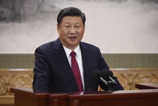 Chinese President and General Secretary of the Communist Party Xi Jinping gives a speech during the introduction of the Communist Party of China's Politburo Standing Committee, in Beijing's Great Hall of the People on October 25, 2017. China on October 25 unveiled its new ruling council with President Xi Jinping firmly at the helm after stamping his authority on the country by engraving his name on the Communist Party's constitution. / AFP PHOTO / WANG ZHAO