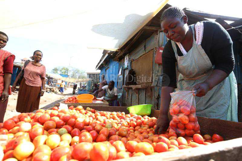 A tomato vendor goes about her business at Kibuye market in Kisumu County. [Collins Oduor/Standard]