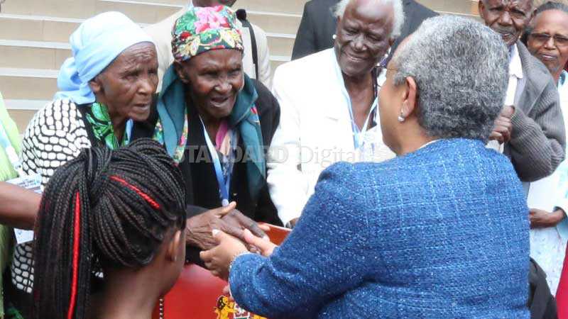 First Lady Margaret Kenyatta (right) with elderly women after launching the Regional Family Conference 2018. [Pius Cheruiyot, Standard]