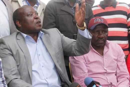 Nakuru West MP Samwel Arama and his Nakuru East counterpart David Gikaria in Nakuru. [Harun Wathari, Standard]