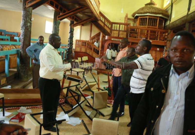 Chaos during ODM meeting at a hotel in Kakamega. [Chrispen Sechere, Standard]