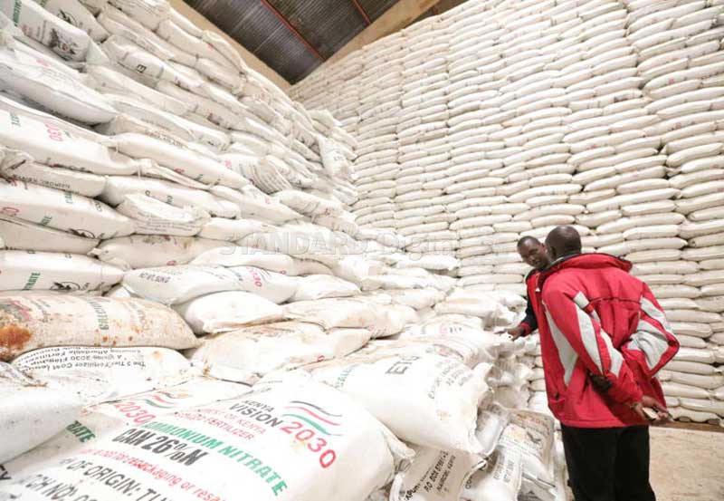 A farmer looks at CAN fertilizer at the National Cereals and Produce Board (NCPB) Eldoret depot. [Photo/Kevin Tunoi/Standard]