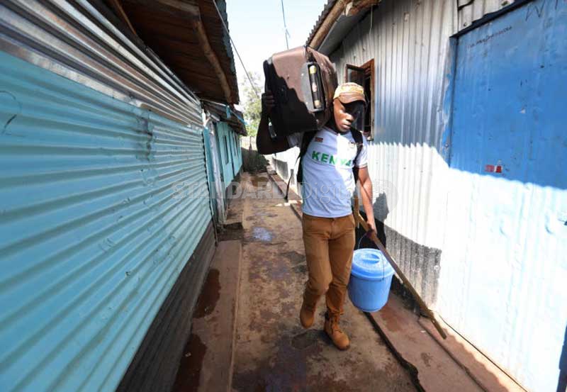 A Kisumu Polytechnic student leaves the hostel in Nyalenda slums yesterday after an attack on colleagues. [Denish Ochieng, Standard]