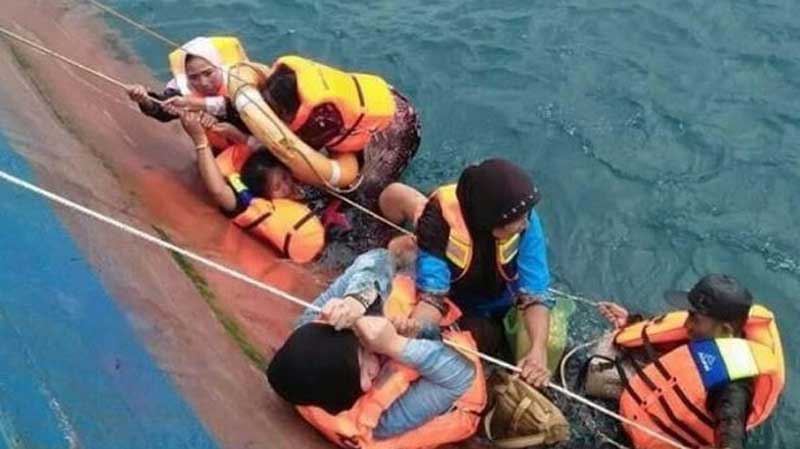 Photos posted on social media show passengers clinging to the boat. [Courtesy]