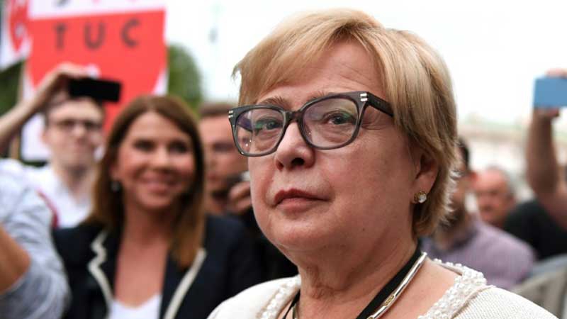 Chanting "Free courts!", "Constitution!" and "Irremovable!" several thousand supporters greeted Supreme Court chief justice Malgorzata Gersdorf as she made her way into the Supreme Court building in central Warsaw.