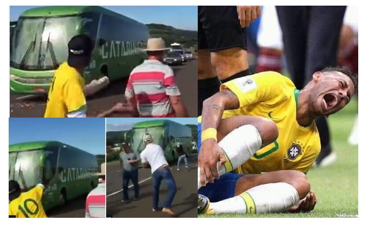 A video has emerged on Social media which seems to show Brazilian fans throwing stones in disgust at the bus that carried their national team after the squad returned from the FIFA World Cup in Russia.