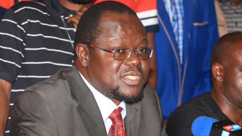 Former Rongo MP Ochillo Ayacko addresses the press in Nairobi. The Orange party picked him to run for the Migori Senate seat. [Beverlyne Musili, Standard]
