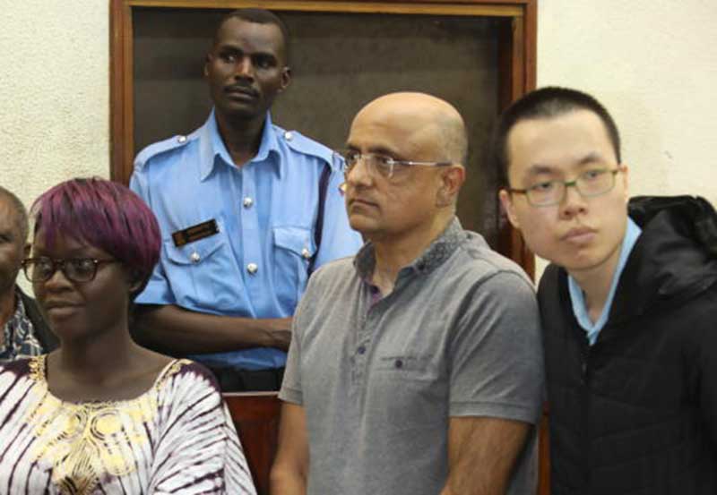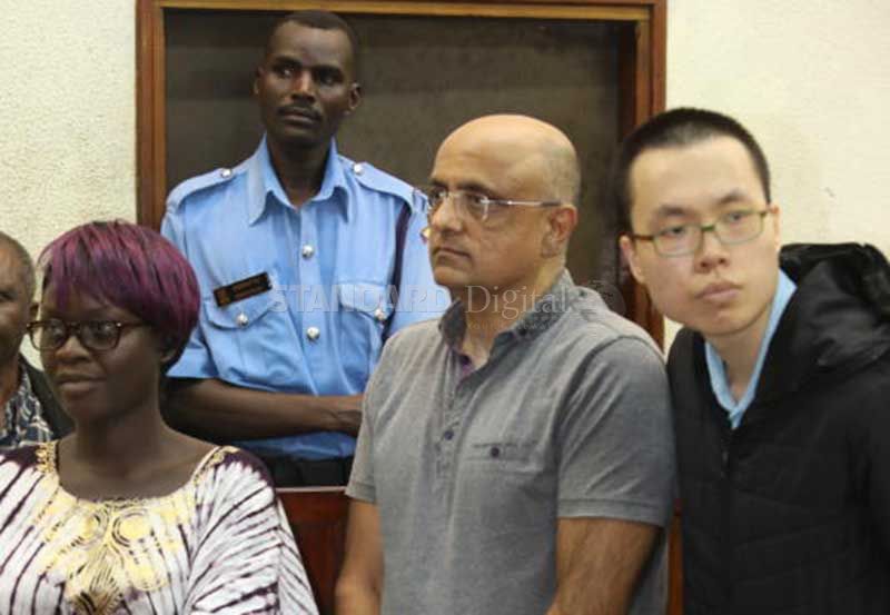 Josephine Muthoni Kariuki, Dr Mahesh Chudasama and Chinese tourist Neo Kian Fu in a Mombasa court where they were charged with attempting to traffic a baby. [Kelvin Karani, Standard]
