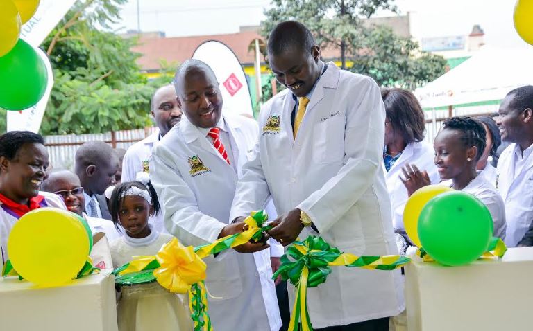 Uasin Gishu Governor Jackson Mandago and UAP Old Mutual CEO Peter Mwangi officially open the refurbished Uasin Gishu County Hospital.