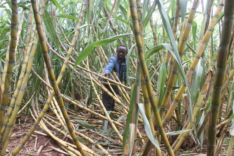 Josiah Omwenga, a sugarcane farmer works at his 2.5 hectare sugarcane farm in Nyambaria Nyamira County. [Sammy Omingo/Standard]
