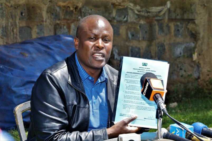 Parliamentary Committee on Trade, Industry and Cooperatives Chairman Kanini Kega explains the contents of the parliamentary report on the sugar scandal at the White Rhino hotel in Nyeri county, August 3, 2018, saying it was not doctored and that there were no underhand dealings in its delivery. [Mose Sammy, Standard]