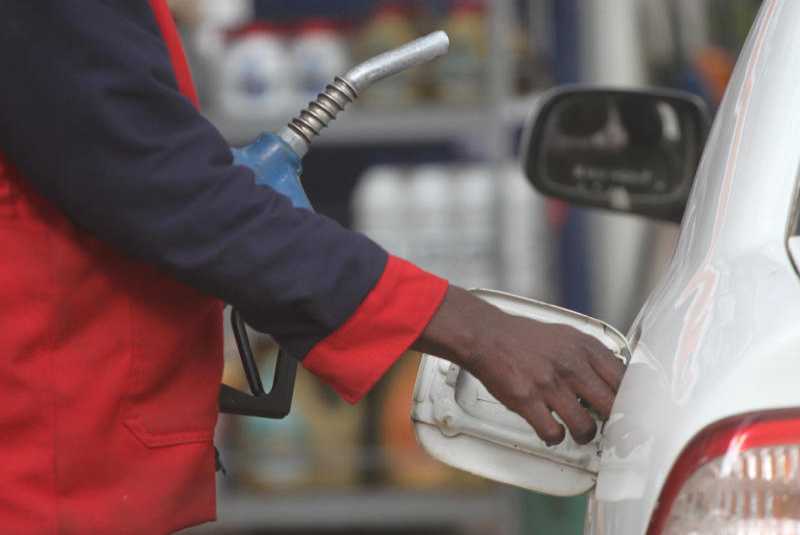 A fuel attendant pumps fuel into a customer's car at the Kobil Petrol station,Koinange street,Nairobi. [Elvis Ogina.Standard]