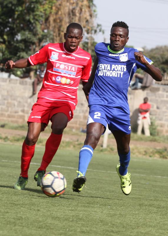 Posta Rangers FC's Cavin Odongo (left) and Dan Otewa of Bandari FC during KPL match at Camp Toyoyo on Saturday August 4, 2018.[Jonah Onyango, Standard]
