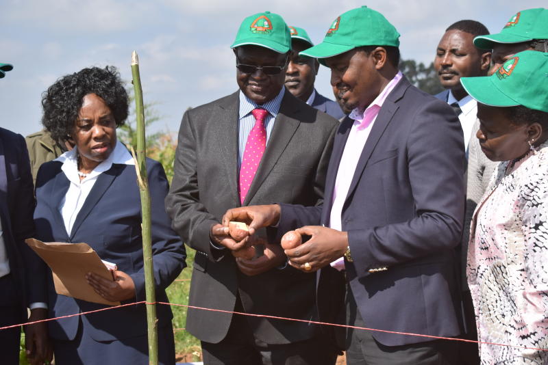Agriculture CS Mwangi Kiunjuri with Meru governor Kiraitu Murungi at Marimba farm in Meru County on August 10, 2018. [Olivia Murithi/Standard]
