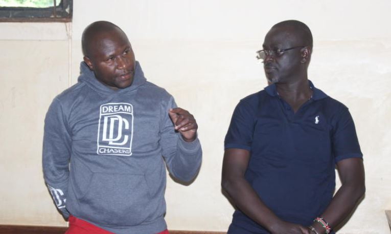 Migori Governor Okoth Obado's aide Caspal Obiero(right) and bodyguard Elvis Omondi when they appeared before Kisii Senior Principal Magistrate Nathan Lutta over Sharon Otieno's murder. (Sammy Omingo, Standard)