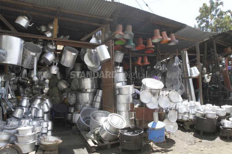 Juakali sector products in landies road where they sell variety of utensils ,burglers,sufurias ,pans and many other metal products that are handmade by kenyans on 11th JANUARY 2017 [PHOTO: DAVID GICHURU/STANDARD]