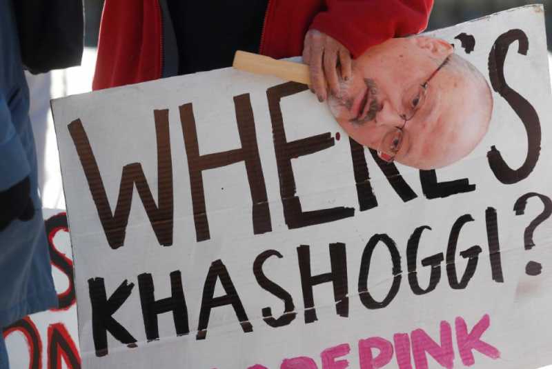 An activist holds a sign and image of missing Saudi journalist Jamal Khashoggi during a demonstration calling for sanctions against Saudi Arabia and to protest Khashoggi's disappearance, outside the White House in Washington, U.S., October 19, 2018. [REUTERS/Leah Millis]