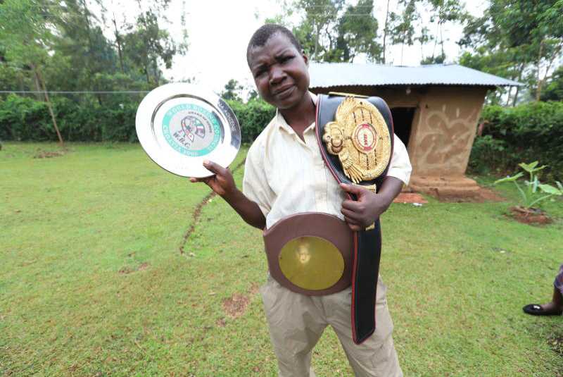 Former World Boxing Champion Conjestina Achieng at her home in Yala village, Siaya county in a picture taken on November 02,2018 morning before Nairobi Governor Mike Sonko took her to a rehabilitation Center and treatment. [Photo: Denish Ochieng/ Standard]
