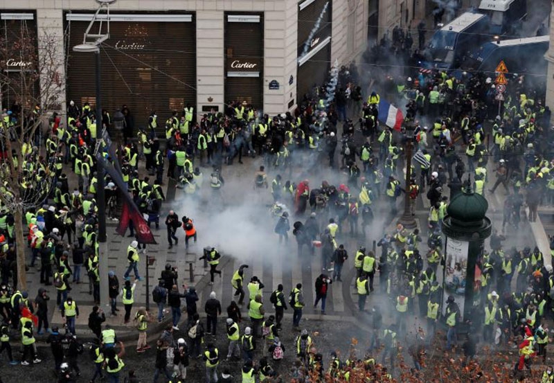 Paris - Police fired tear gas canisters at “yellow vest” protesters in central Paris on Saturday during a demonstration against the high cost of living.