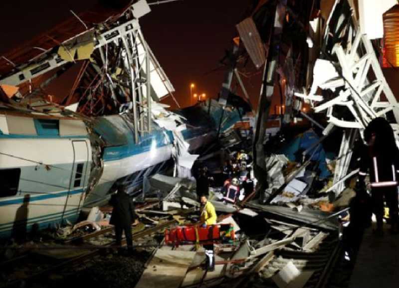 Video footage showed emergency workers at the scene, working to rescue people from carriages trapped beneath the mangled metal wreckage of an overpass at the Marsandiz train station, to the west of Ankara.