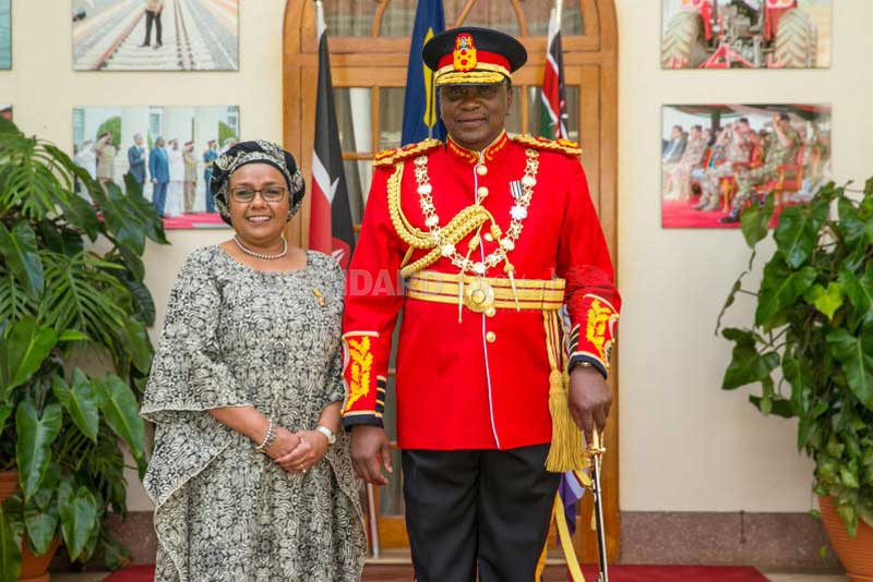 President Kenyatta and First Lady Margaret Kenyatta at State House, Nairobi as they prepared to leave for the 55th Jamhuri Day celebrations at Nyayo Stadium.