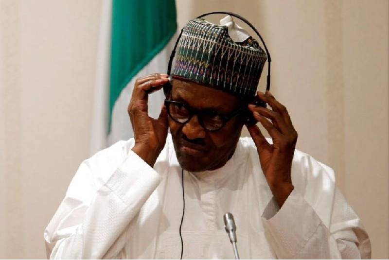 Nigeria's President Muhammadu Buhari adjusts his translation device during a news conference at the presidential villa in Abuja, Nigeria. [Photo: Reuters]
