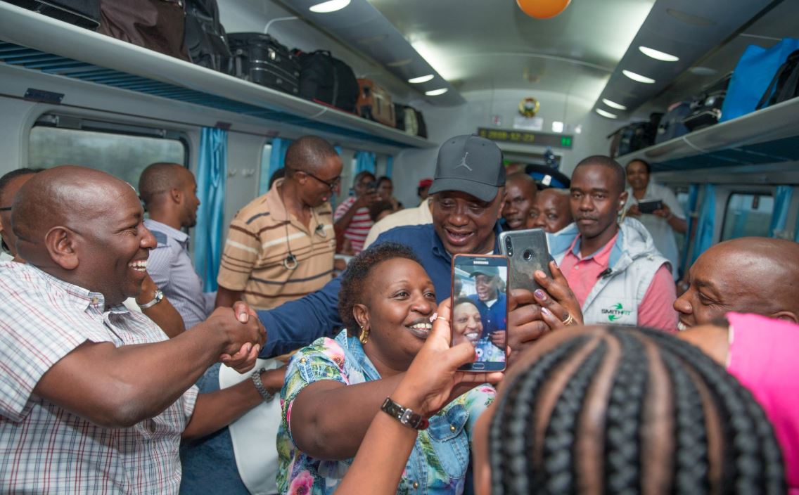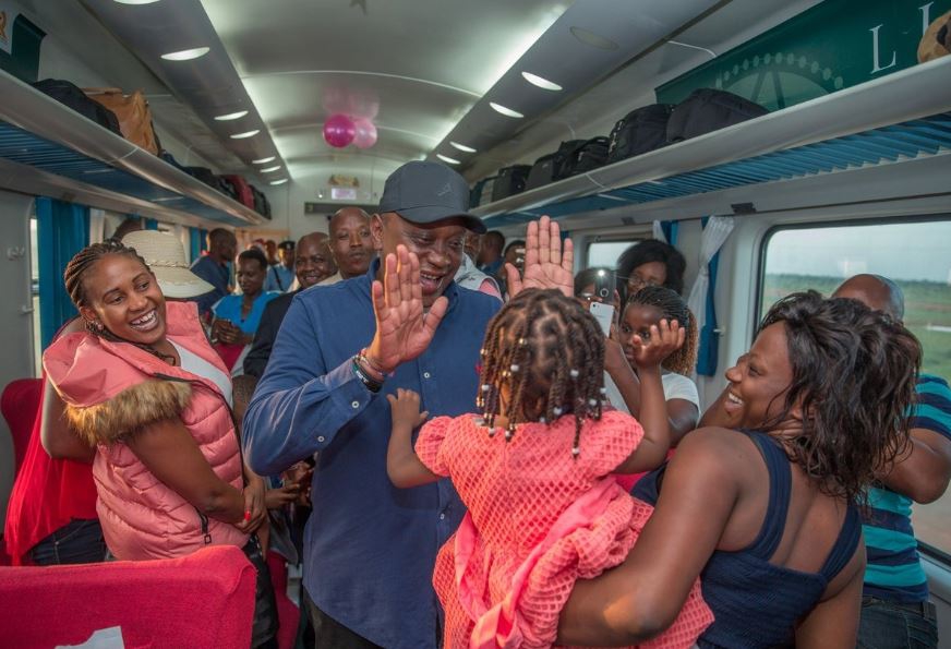 President Uhuru Kenyatta meets commuters on the Madaraka Express.