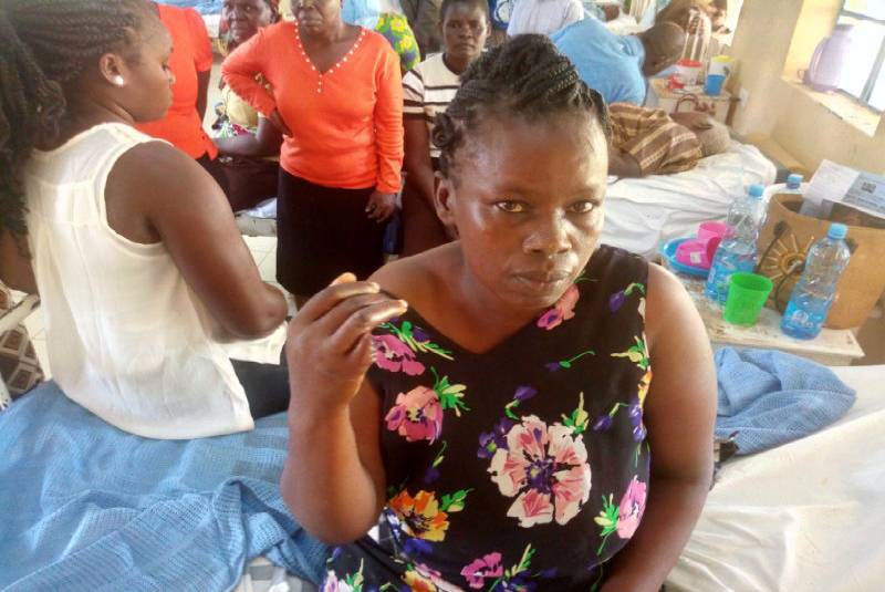 Monica Atieno 42 nursing injuries at Migori County level Four Hospital after her husband brutally attacked her using panga. [Photo: Caleb Kingwara, Standard]