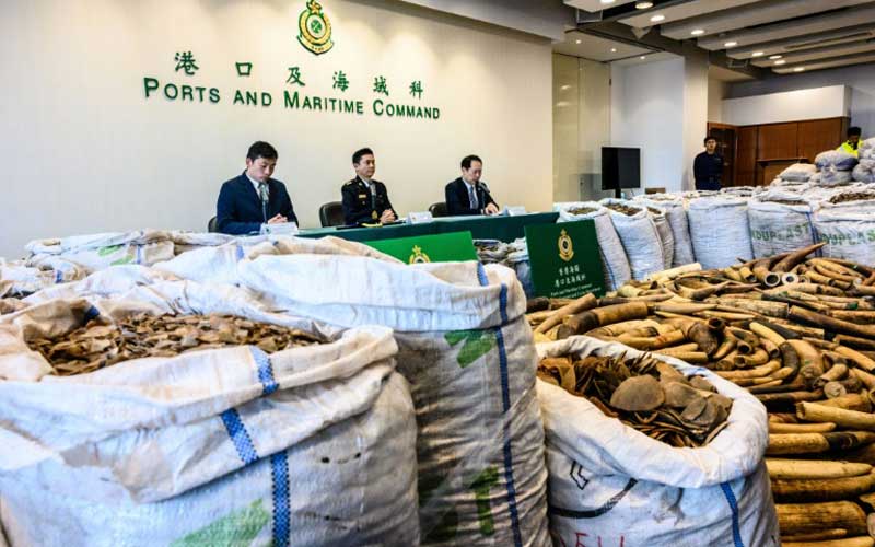Officials said they conducted a joint investigation with mainland customs officers on 16 January, seizing 8,300 kilos of pangolin scales and 2,100 kilos of ivory tusks hidden inside a container at a customs facility.