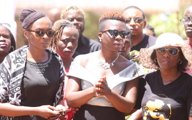 Diana Rose (centre), the widow of James Oduor, alias Cobra, during his burial at Ukwala, Siaya. [Collins Oduor, Standard]