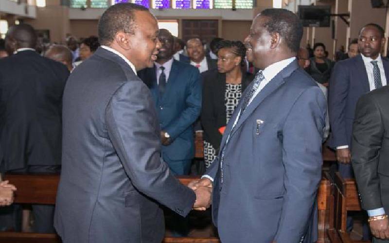 President Uhuru Kenyatta and Raila Odinga. [Photo, Standard]