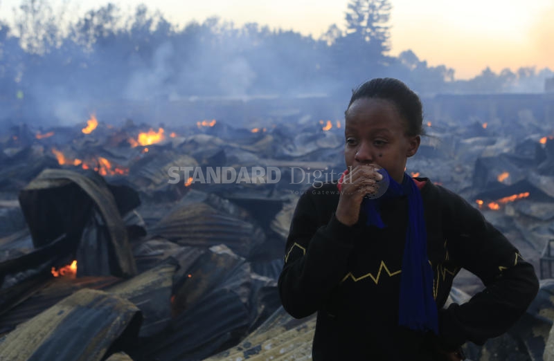 Toi market in Kibera, Kibera goes up in flames. [Noor Khamis/Standard]