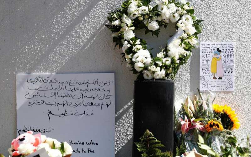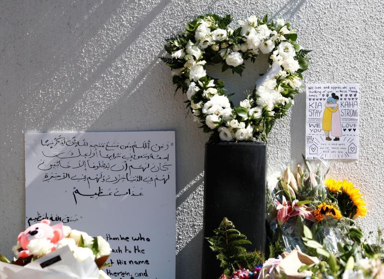 Flowers and messages are seen at the memorial site for the victims of Friday's shooting, outside Masjid Al Noor mosque in Christchurch, New Zealand March 19, 2019 [Courtesy]