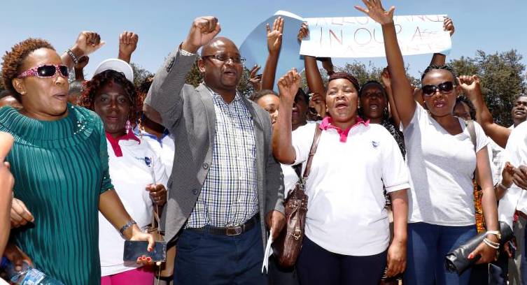 KNUN General Secretary Seth Panyako when he joined nurses from Nakuru County on February 18,2019: [Photo: Harun Wathari/Standard]