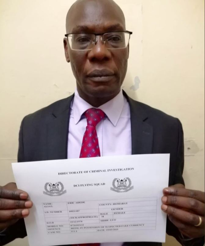 Mr.Erick Adede who was arrested yesterday after a safe deposit box registered in his name with Sh2b fake currency was discovered at Barclays Bank, QueensWay branch.