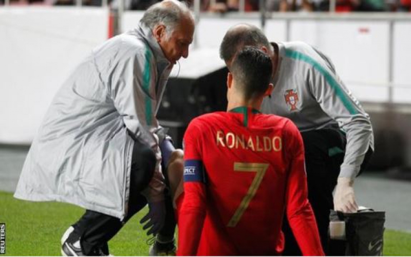 Ronaldo went off in the first half of the Euro 2020 qualifier with an apparent hamstring injury. The match ended 1-1.