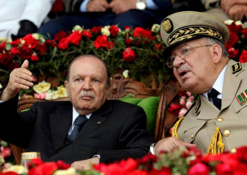 Algeria's President Abdelaziz Bouteflika gestures while talking with Army Chief of Staff General Ahmed Gaed Salah during a graduation ceremony of the 40th class of the trainee army officers at a Military Academy in Cherchell 90 km west of Algiers, Algeria June 27, 2012.