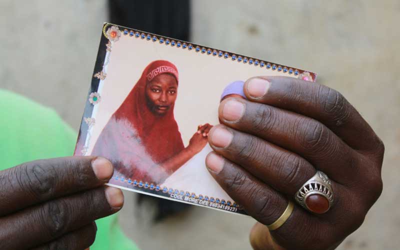 Aisha Musa Maina digs through an old bag looking for memories of her daughter Hauwa, one of the Chibok schoolgirls kidnapped five years ago by Boko Haram jihadists in northeastern Nigeria.